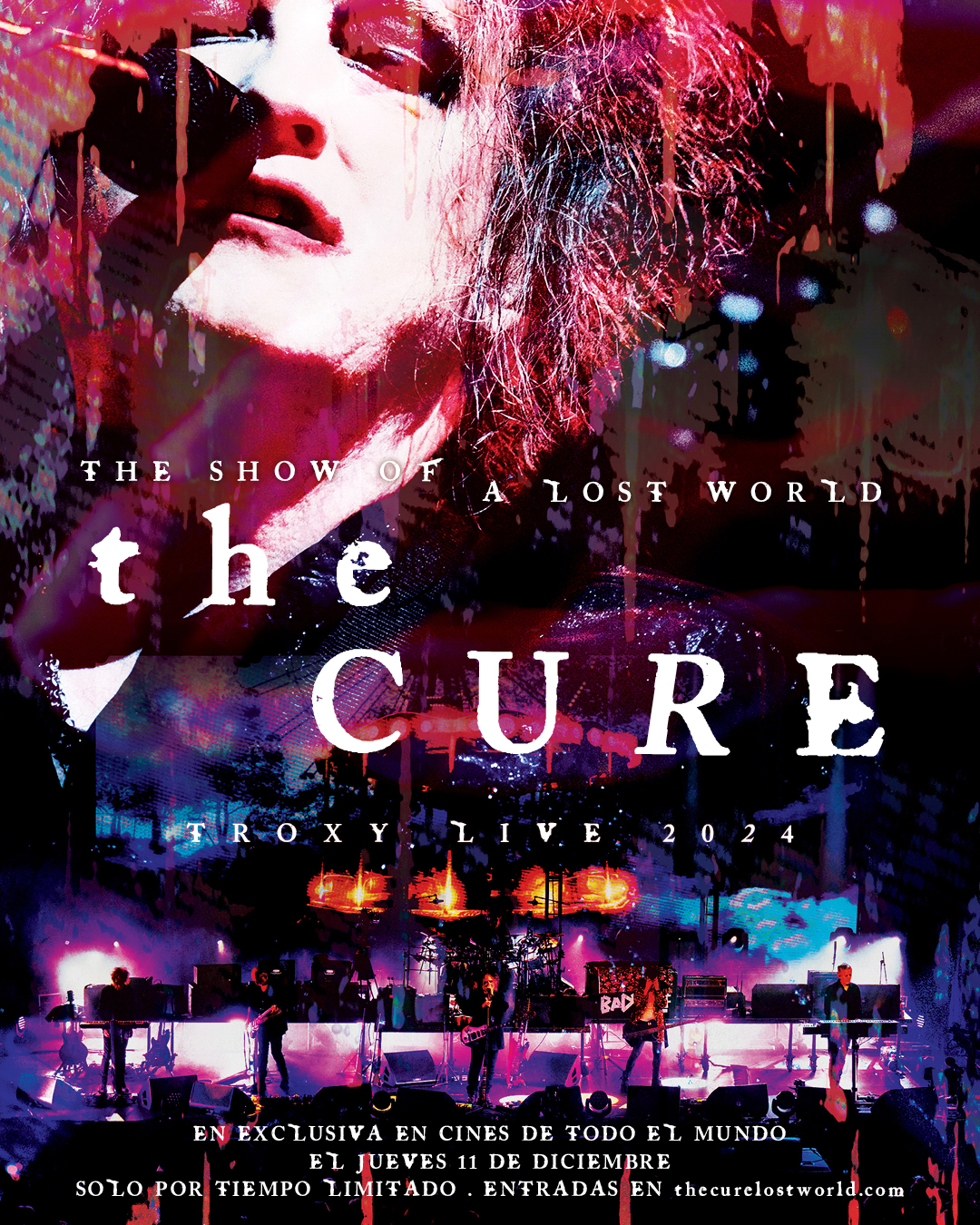 Con más de cuatro décadas marcando la historia del rock alternativo, The Cure regresa a la pantalla grande con The Cure: The Show of a Lost World; un concierto completamente reeditado, recortado y remasterizado en 4K, que los fans podrán disfrutar exclusivamente a través de Cinépolis +QUE CINE. El largometraje llegará a complejos seleccionados el 11 y 14 de diciembre, con Preventa Cinépolis disponible a partir del 20 de noviembre.