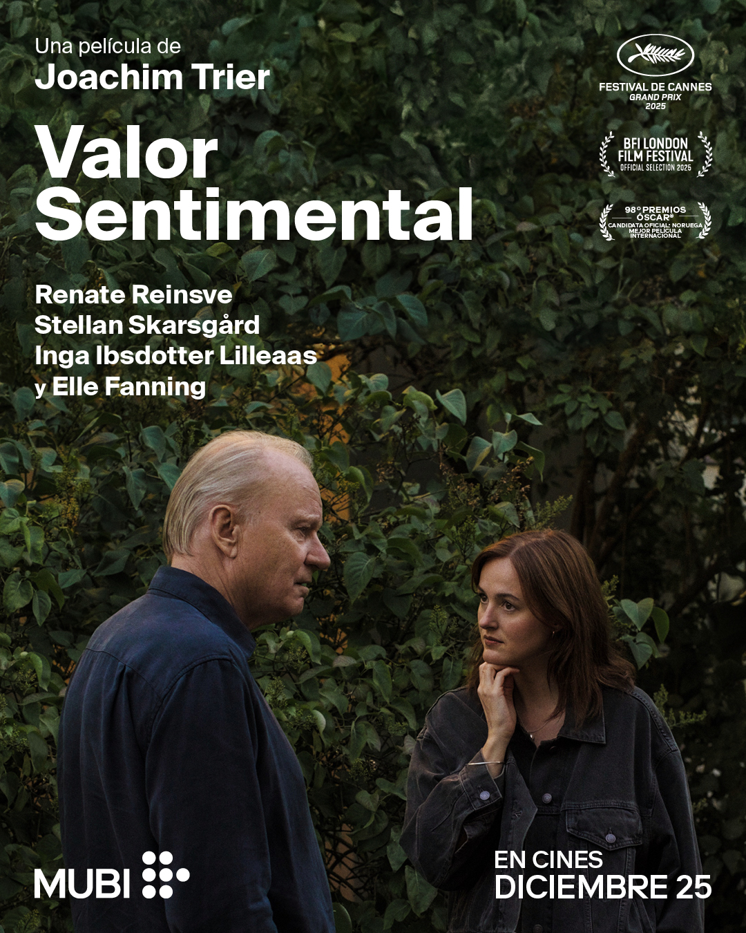 Joachim Trier (La Peor Persona Del Mundo, 2021) regresa con su película más emocionalmente compleja: un drama familiar donde dos hermanas se reencuentran con su padre, un director que planea filmar su propio guion autobiográfico. La muerte de su madre y el regreso a la casa familiar abren un espacio de memoria, duelo y reconciliación. En esta nueva obra, que se llevó el Gran Premio del Jurado en Cannes 2025, Trier vuelve a hacer mancuerna con Renate Reinsve en el papel principal y reúne un elenco de gran peso emocional y actoral encabezado por Stellan Skarsgård (Mente Indomable, 1997) y Elle Fanning (Maléfica, 2014), quienes enriquecen la historia con interpretaciones profundamente matizadas.